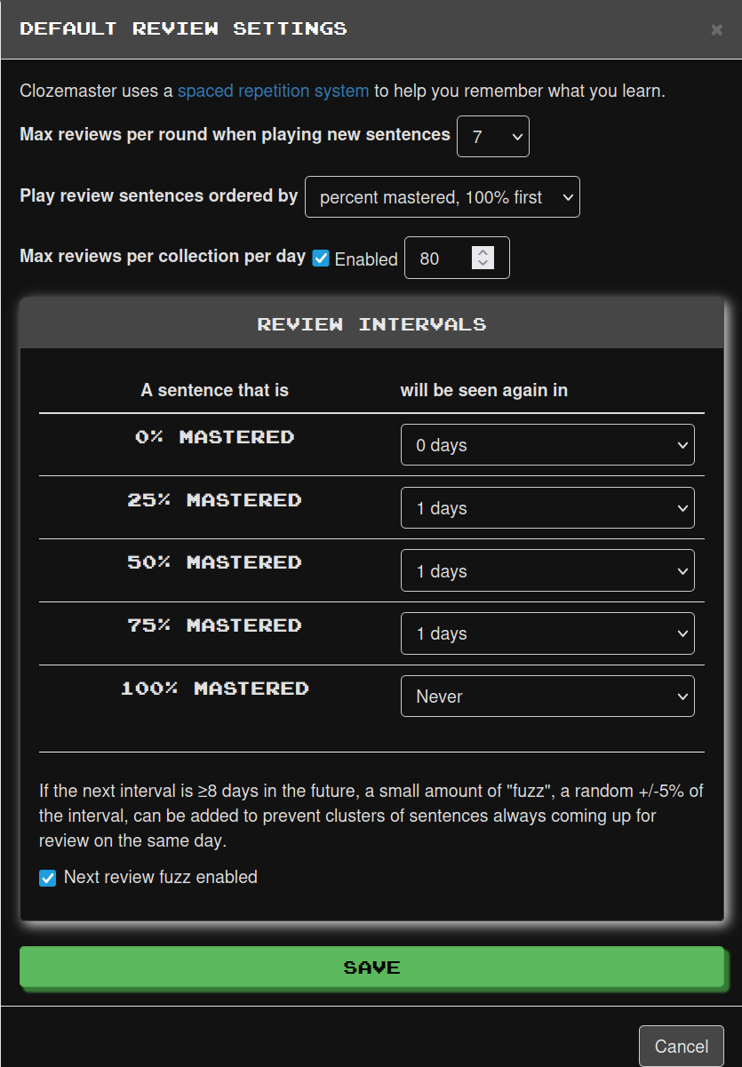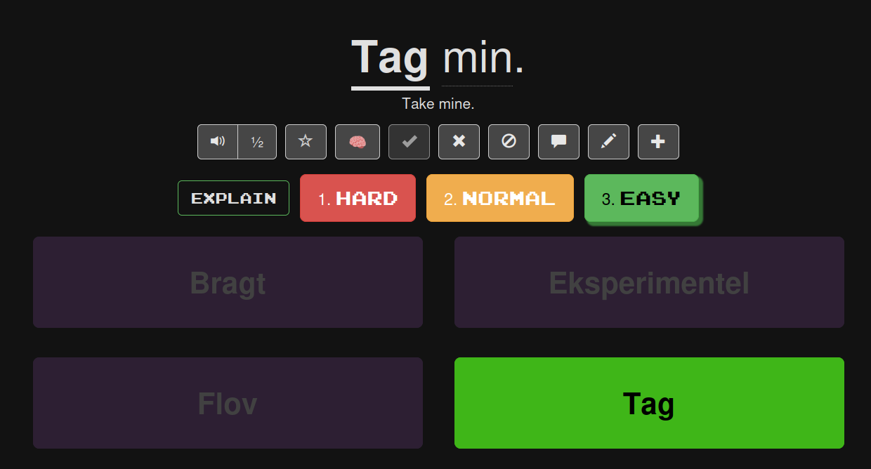Side info: At some point, Clozemaster experimented with showing these buttons not just for sentences that reached 100% but for all sentences, regardless of their percentage.