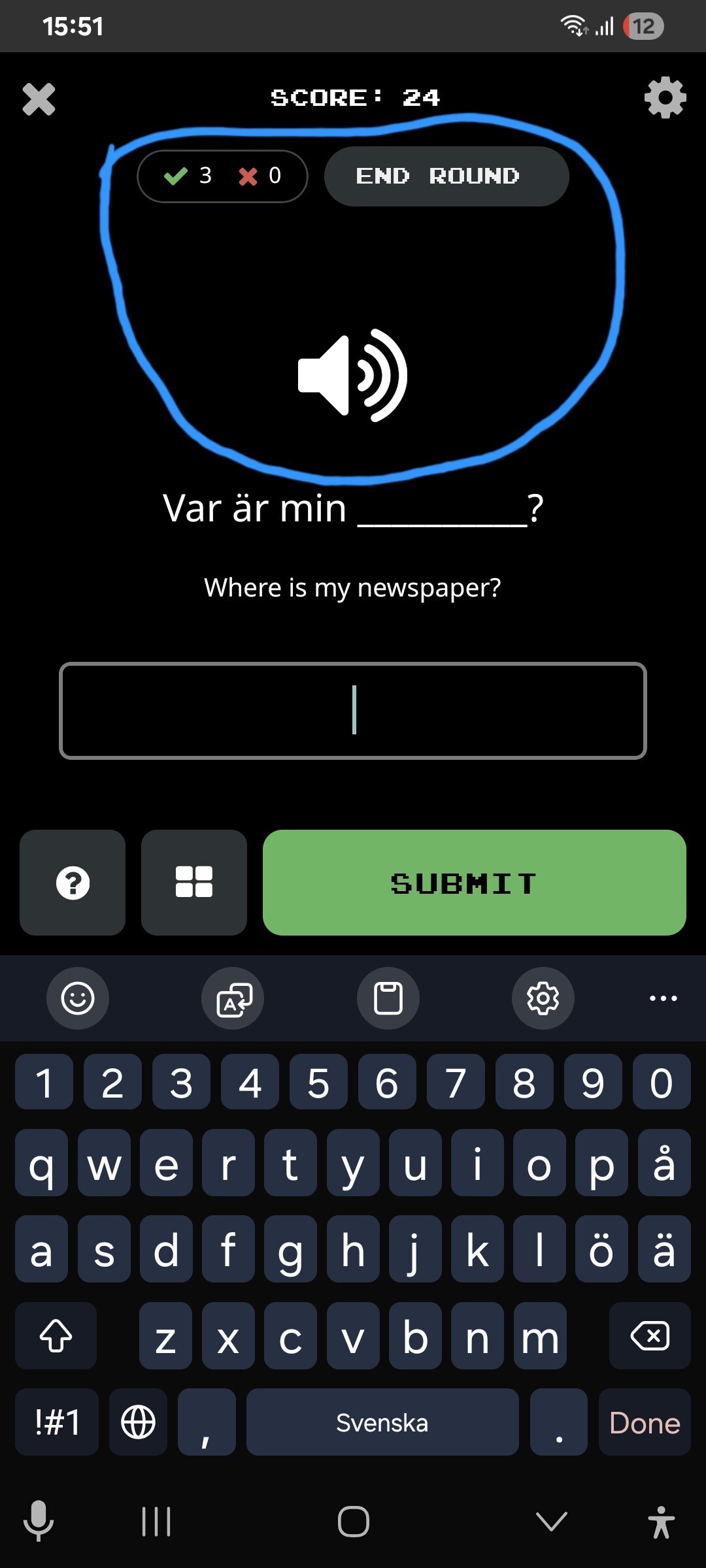 Sometimes, when I try to type the answer I see that the box is located too low and I have to “retrieve” it. This interrupts the flow of the game.