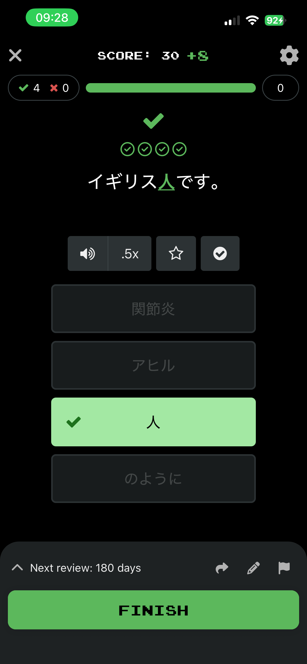 I’ve noticed that the audio from Clozemaster is sometimes inconsistent when played on an iPhone. For example イギリス人です。is pronounced correctly as いぎりすじんです。but イギリス人。is pronounced as いぎりすひと。